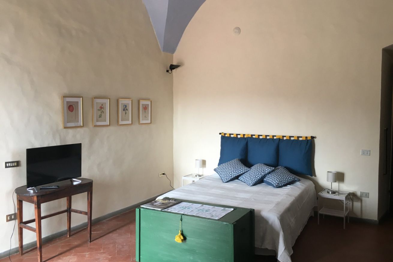 La camera da letto principale, curata nei dettagli, unisce il fascino rustico tipico delle case di campagna con elementi moderni per garantire comfort e accoglienza. È lo spazio ideale per riposare dopo una giornata alla scoperta dei borghi, delle colline e delle città d’arte della Toscana.