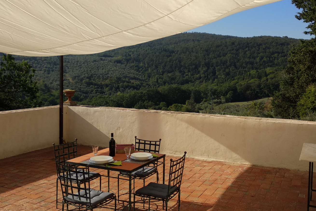 All’esterno troverete un ampio balcone panoramico dove potrete rilassarvi leggendo un libro, fare colazione all’aria aperta o semplicemente godervi il silenzio e le meravigliose viste sul paesaggio toscano.