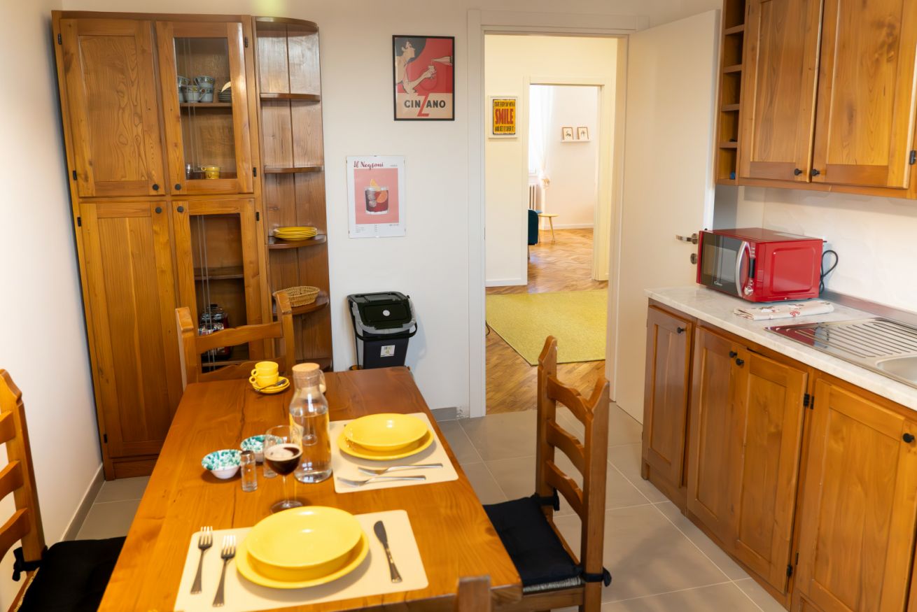 La cucina, completamente attrezzata, è perfetta per gli ospiti che amano cucinare: troverete tutto ciò di cui avete bisogno, inclusi elettrodomestici come microonde, bollitore e utensili di ogni genere, per preparare facilmente i vostri piatti preferiti.