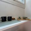 Lavello elegante: con rubinetto nero opaco e comodo spazio di lavoro. A disposizione troverete anche il detersivo per piatti per le vostre necessità quotidiane.